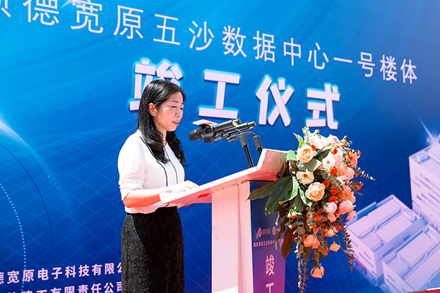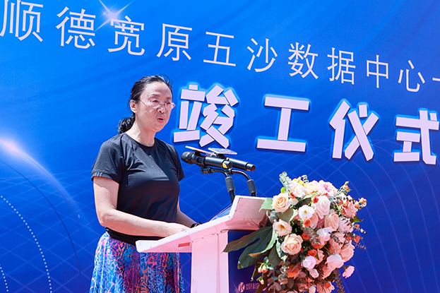 CDCC技术委员会专家组专家邓重秋女士代表中国电子工程设计院世源科技有限公司对五沙(宽原)数据中心成功竣工表示热烈祝贺,从专业技术角度解读宽原科技为“绿色、节能”付出的巨大努力,并表示这是国家信息系统执行双碳政策的重要举措。